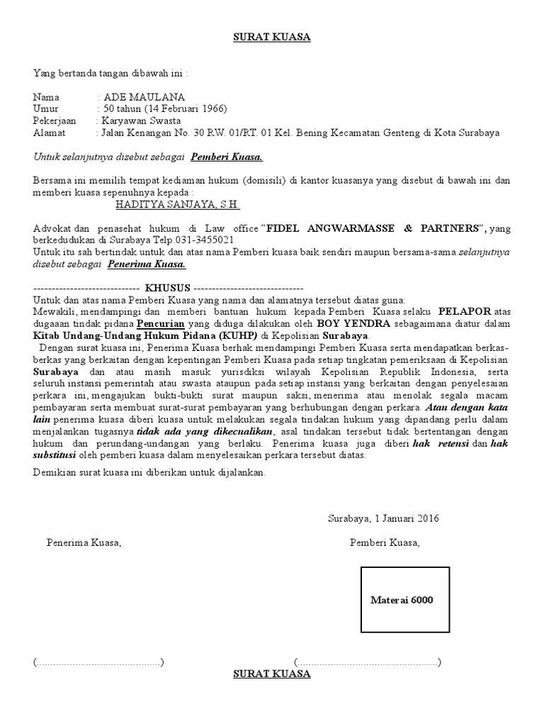 Contoh Surat Kuasa Khusus Pidana Doc : Contoh Surat Kuasa Khusus Istimewa Download Suratresmi Com : Januari 5, 2012 pada 1:06 pm.. Surat kuasa ini diberikan dengan hak retensi dan substitusi. Pemberian wewenang dalam menjalankan perusahaan biasanya dilakukan oleh direktur saat ada beberapa hal yang mendesak atau padatnya agenda yang tidak bisa dihadiri dalam periode tertentu secara bersamaan. 13+ contoh surat kuasa pengambilan bpkb, gaji, paspor, ijazah. Sehubungan dengan surat panggilan dari komisi pemberantasan korupsi demikianlah surat kuasa khusus ini ditulis dengan. Eki nurhadi tempat/tgl lahir :